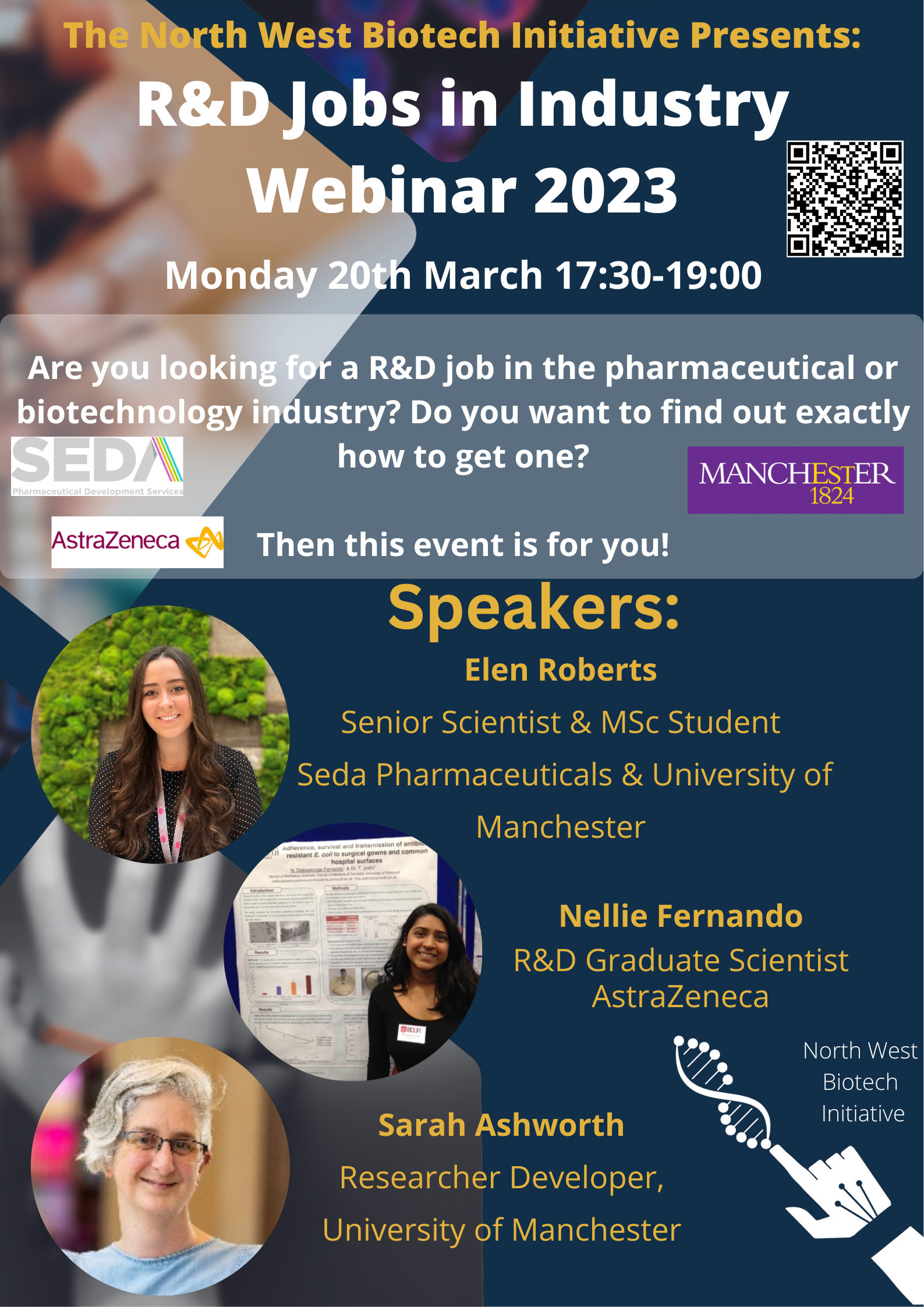 The North-West Biotech Initiative are hosting an “R&D Jobs in Industry Webinar”, on Monday 20th March 2023 at 5:30pm. Join our panel of pioneering experts in the field to find out how you can get yourself into a research position in the pharmaceutical or biotechnology industries. The webinar will include: