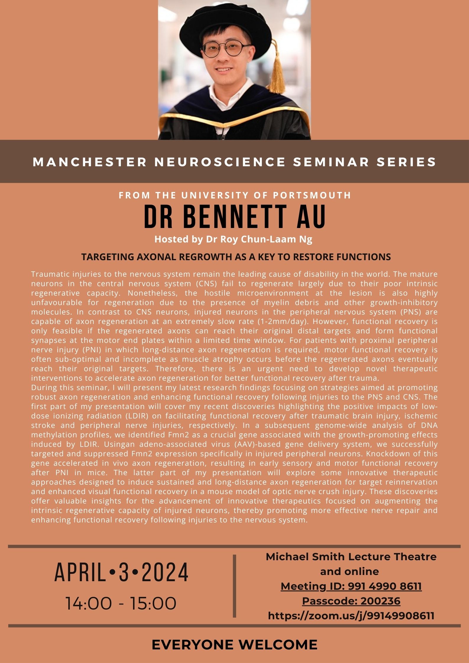 Manchester Neuroscience Seminar Series - Speaker: Dr Bennett Au from the University of Portsmouth